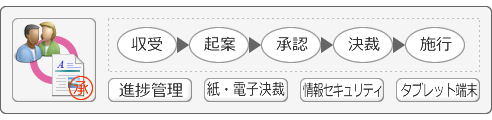 - 紙決裁と電子決裁処理の一元管理(統一文書記号・番号と共通簿冊管理)